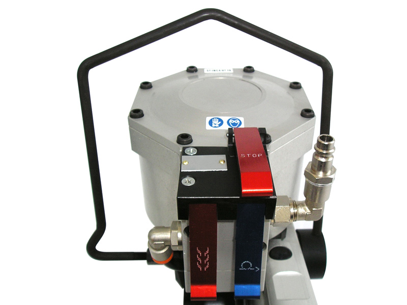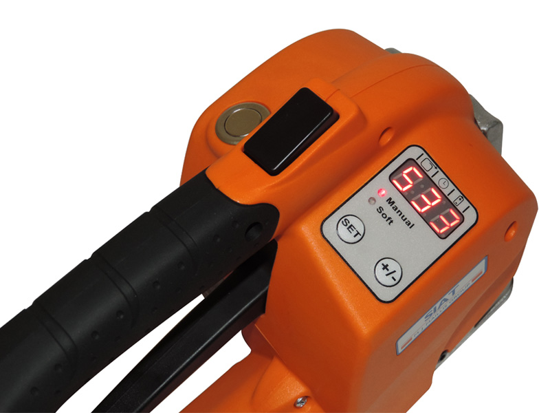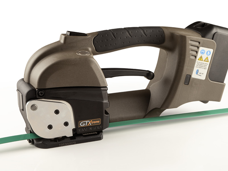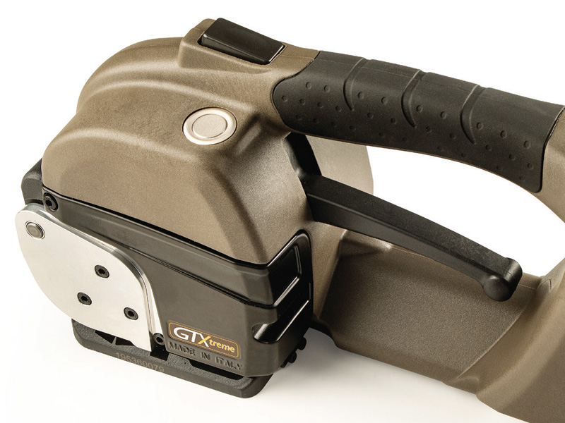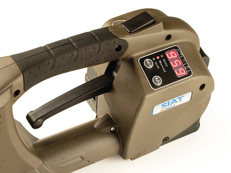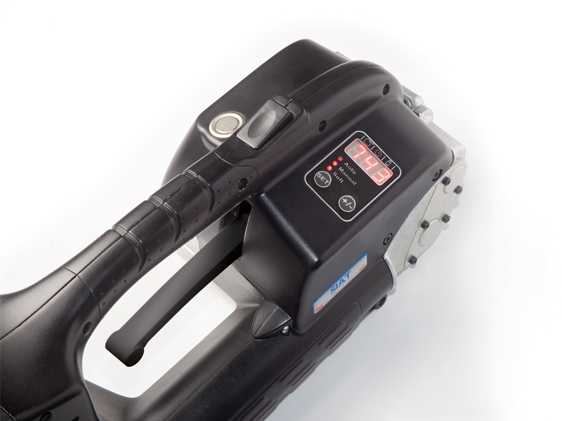 Battery strapping tool with adjustable functioning mode according to the application: manual and soft. It is easy to use and to adjust. Perfectly balanced, it can perform both vertical and horizontal strapping. The brushless motor is powered by the latest Li-Ion battery.
